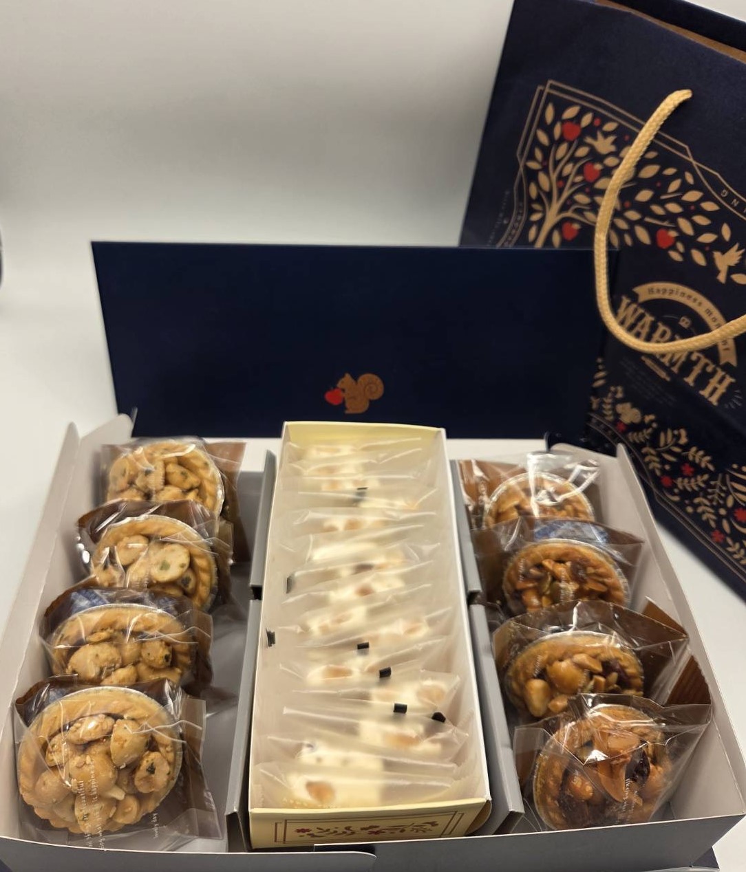 富貴堅果米香禮盒 : 4入堅果塔+5入米脆餅+1盒牛軋糖