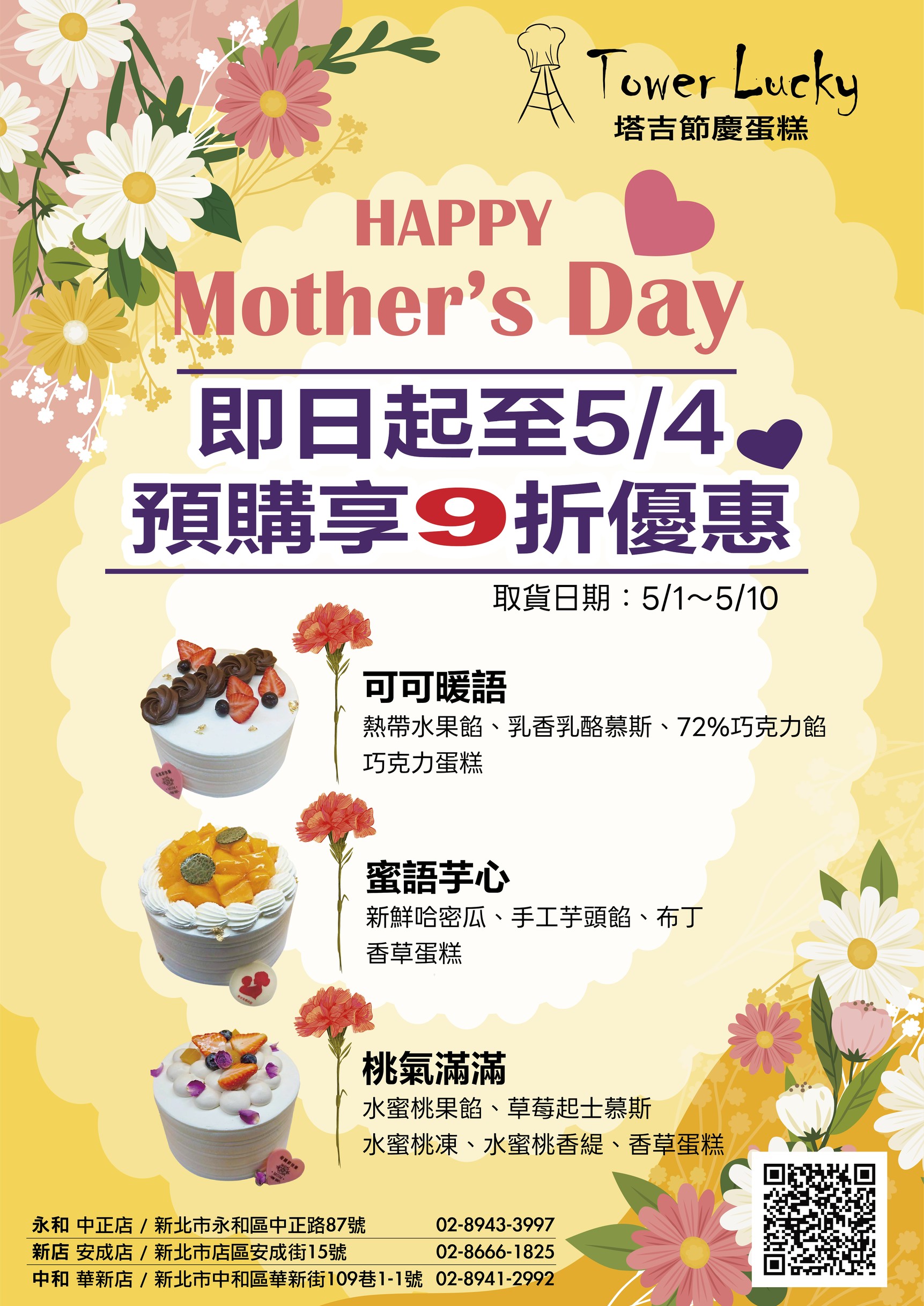 即日起至 5/4止 ,母親節蛋糕 預購享9折優惠